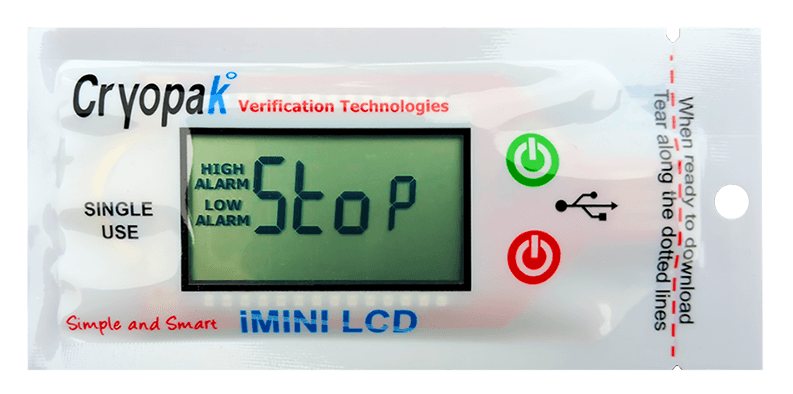Este dispositivo compacto viene en una bolsa impermeable y está pre-programado de acuerdo a las especificaciones del cliente. El iMINI LCD puede almacenar hasta 8000 lecturas y posee 4 umbrales de alarma. Es capaz de medir la temperatura entre -40°C y 80°C. Para iniciar el dispositivo, sólo tiene que pulsar el botón de inicio y dejar que el iMINI LCD haga el resto. Los datos se pueden recuperar mediante el software de Cryopak Console Plus.